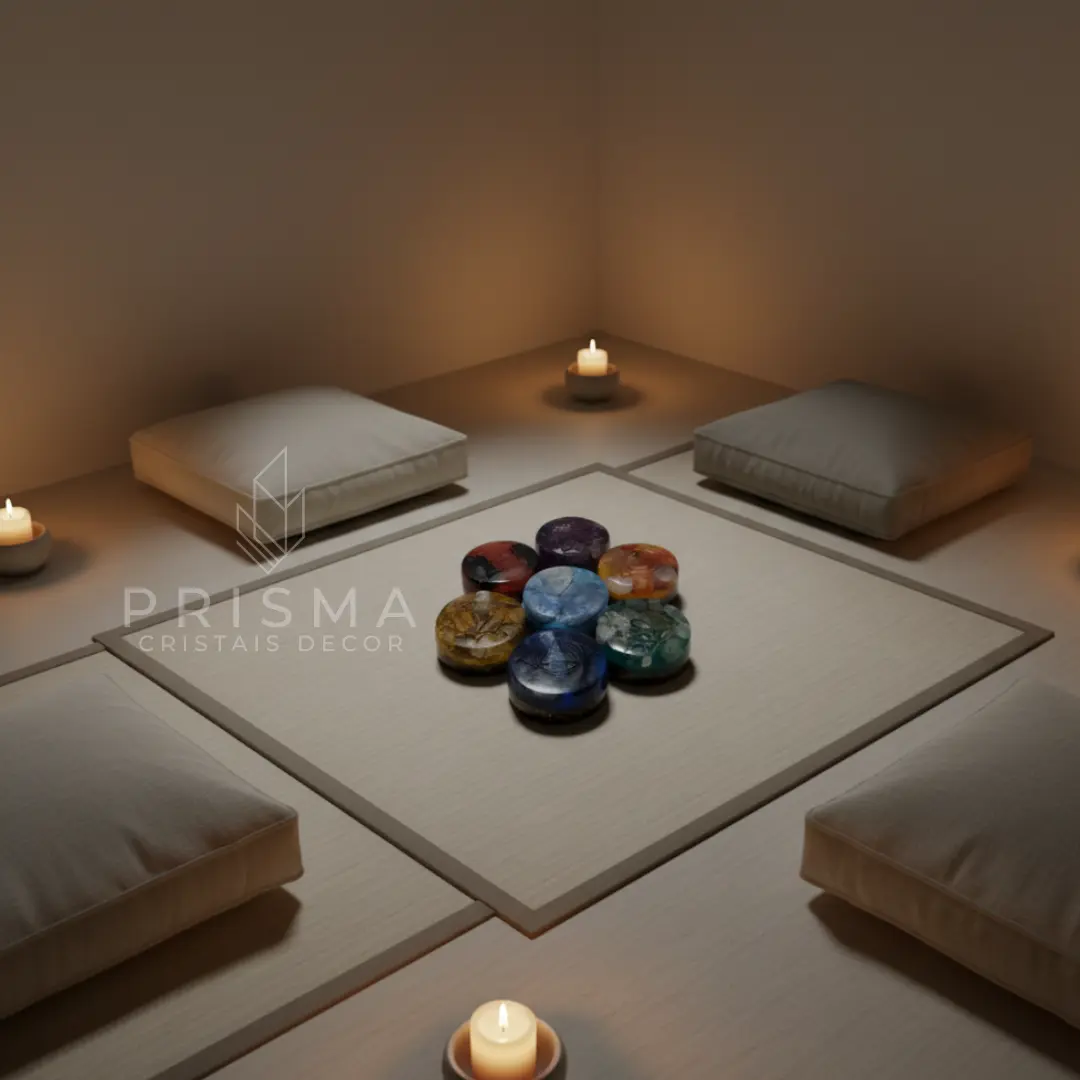 Cada peça do kit é alinhada aos sete chakras principais do corpo humano, do enraizamento do chakra básico à conexão divina do coronário. Jaspe vermelho, cornalina, citrino, quartzo verde, quartzo azul, sodalita e ametista atuam como guardiões energéticos, ativando força vital, criatividade, prosperidade, amor, comunicação, intuição e espiritualidade.
